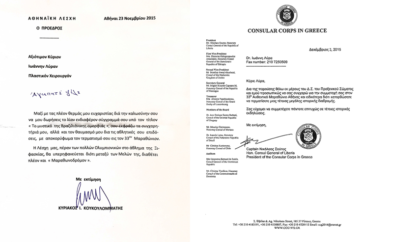 Μετά τον 33-ο Μαραθώνιο μεταξύ άλλων, συγχαρητήρια έστειλαν με επιστολές τους και οι εξής προσωπικότητες: