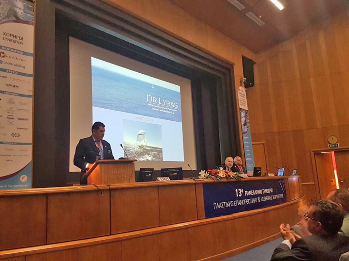 Ο Δρ Ι. Λύρας ως μέλος του ΔΣ, της οργανωτικής επιτροπης, προεδρος εκτεταμένων επιστημονικών ανακοινώσεων και ομιλητής για το liquid lift (Ενέσιμη ανόρθωση προσώπου), στο 13ο Πανελλήνιο συνέδριο πλαστικής χειρουργικής στην Αθήνα.