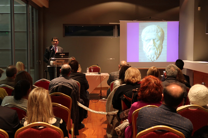 Η συντονίστρια κ. Μαρία Μανιάτη εξήγησε τον μύθο του Πυγμαλίωνα και της Γαλάτειας και παρουσίασε τους ομιλητές. Επιφανής καλεσμένος και ο Πρέσβης επί τιμή κ. Δημήτρης Ηλιόπουλος ο οποίος ανέπτυξε την σημασία που δίνουν οι υπηρεσίες υγείας των Ευρωπαϊκών χωρών και θεσμικά η Ευρωπαϊκή Ένωση στη βελτίωση της ψυχολογίας των ανθρώπων μέσα και από την βελτίωση της εξωτερικής τους εμφάνισης.