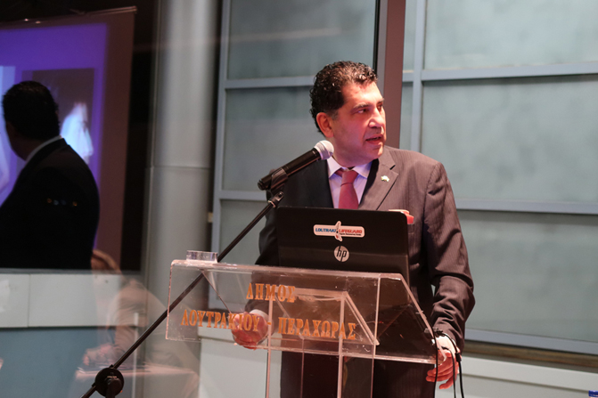 Ο Δήμαρχος Λουτρακίου-Περαχώρας-Αγίων Θεοδώρων κ. Γεώργιος Αλκ. Γκιώνης χαιρέτισε την εκδήλωση λέγοντας ότι ο Δήμος δίνει μεγάλη σημασία στην ανάπτυξη της ιαματικής ιατρικής στην Ελλάδα και ειδικά στην περιοχή του η οποία είναι γνωστή από την αρχαιότητα για την φροντίδα που παρέχει στους ενδιαφερόμενους τόσο για την ξεκούρασή τους, όσο όπως είπε ο Δρ. Ιωάννης Λύρας και για την αποκατάσταση μετά από χειρουργικές επεμβάσεις πλαστικής χειρουργικής και θεραπείες αισθητικής και ομορφιάς.